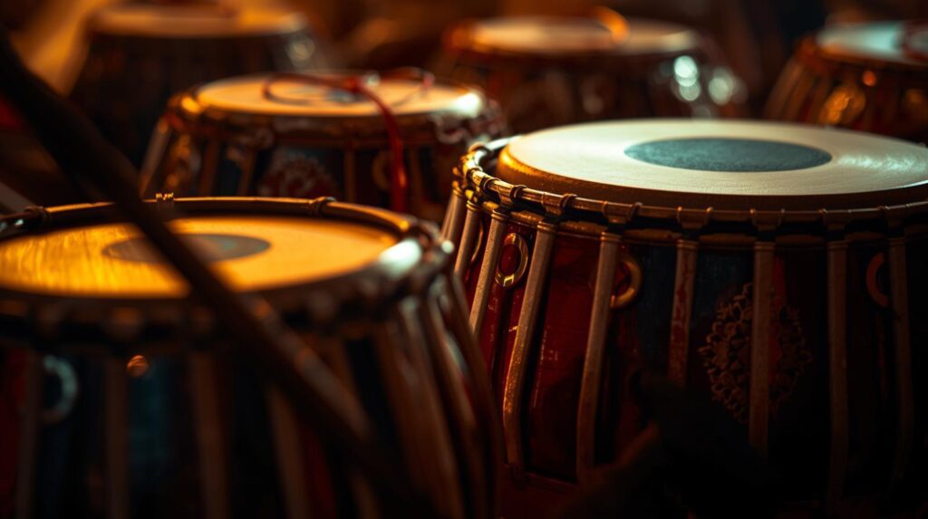 Rhythmic instruments maintain the tala (time cycle) and enhance the performance’s energy. They provide the structure within which melodic improvisation occurs.